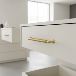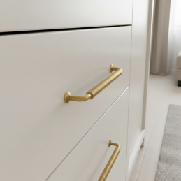 Úchytka STIGMA v starozlatom prevedení je ideálnou voľbou pre zákazníkov, ktorí hľadajú výrazný, kvalitný a dizajnovo prepracovaný detail pre svoj nábytok.