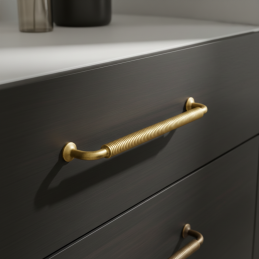 Dizajnová nábytková úchytka STIGMA v prevedení starozlatá zaujme výrazným industriálnym charakterom a precíznym vrúbkovaným úchopom. Povrchová úprava v starozlatom odtieni dodáva úchytke autentický, mierne vintage vzhľad, ktorý sa skvele hodí do industriálnych, loftových aj rustikálnych interiérov.