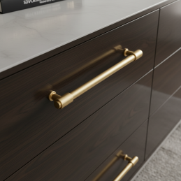 Nábytková úchytka TINA v elegantnom prevedení zlatá brúsená je nadčasovým doplnkom, ktorý dodá nábytku luxusný a zároveň jemný vzhľad. Jej čistý valcový tvar pôsobí moderne a harmonicky, vďaka čomu sa hodí do moderných, minimalistických aj elegantných interiérov.
