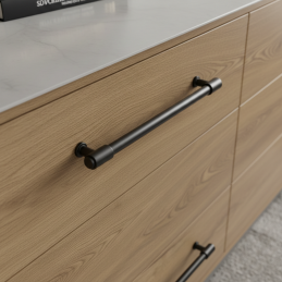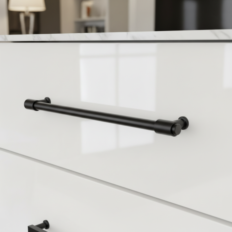 Nábytková úchytka TINA v modernom prevedení čierna matná je elegantným a nadčasovým doplnkom, ktorý zvýrazní čisté línie moderného nábytku. Vďaka jednoduchému valcovému tvaru sa výborne hodí do minimalistických, industriálnych aj moderných interiérov.