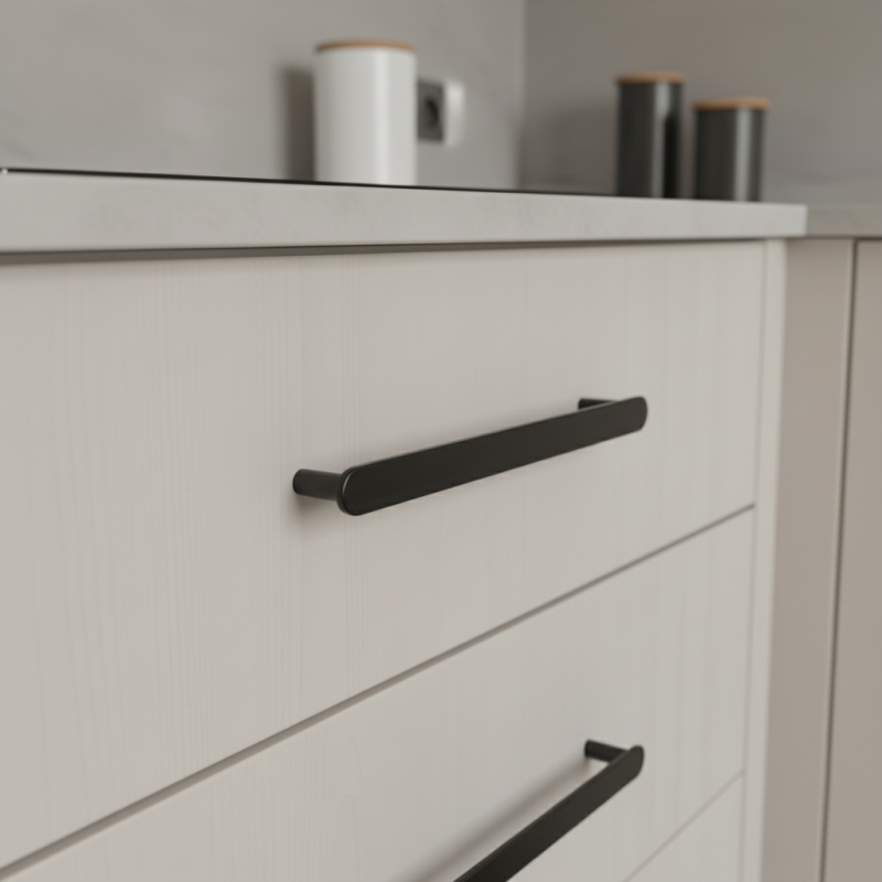 Moderná nábytková úchytka SORTA v elegantnom prevedení čierna matná je ideálnym riešením pre kuchynský, kúpeľňový aj obývací nábytok. Matný povrch pôsobí luxusne, minimalisticky a dokonale ladí s drevom, betónom, bielou aj farebnými dekor­mi.Okrúhly profil úchytky kombinovaný s hranatými nožičkami vytvára nadčasový a univerzálny dizajn. Úchytka je...