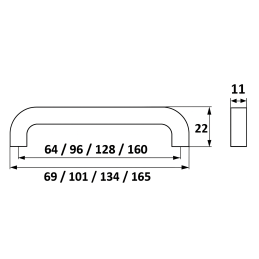 Rozteč 64 mm / Celková dĺžka 69 mm