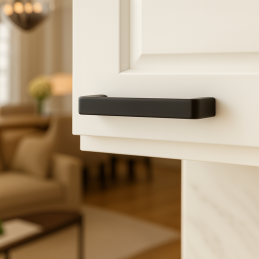 Vyrobená z kvalitnej ocele, ktorá zaručuje pevnosť, dlhú životnosť a odolnosť voči každodennému používaniu. Povrchová úprava v čiernej matnej farbe dodáva úchytke moderný vzhľad a zároveň chráni pred poškriabaním či odtlačkami prstov.