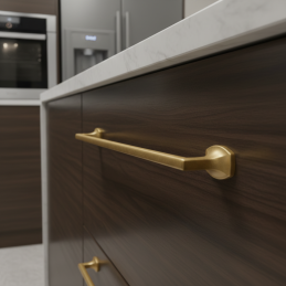 Úchytka AMADORA v starozlatej farbe je ideálnou voľbou pre tých, ktorí hľadajú elegantný, kvalitný a nadčasový prvok s možnosťou dokombinovať ho s knobkou pre dokonale jednotný vzhľad nábytku.