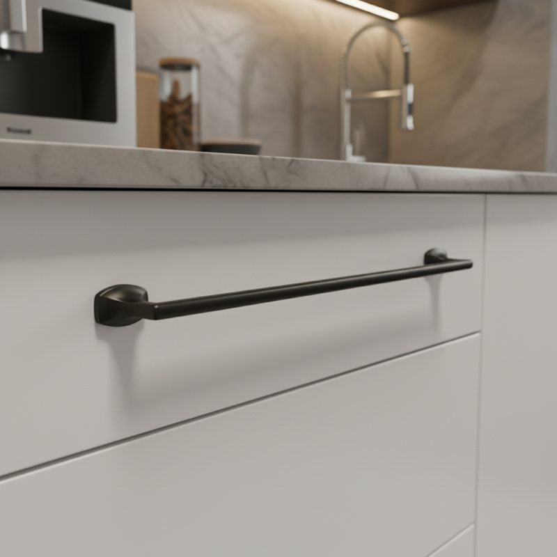 Úchytka AMADORA v čiernej matnej farbe je ideálnou voľbou pre moderné interiéry, kde je žiadaný čistý dizajn, elegancia a kvalitné spracovanie.