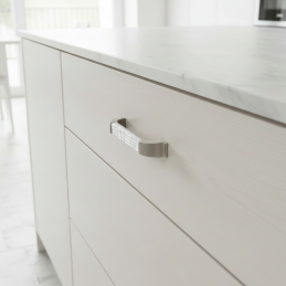 Táto úchytka je ideálna pre kuchynské linky, komody, kúpeľňový nábytok a skrinky rôzneho typu – dodáva im elegantný, čistý a harmonický detail bez prehnanej okázalosti.