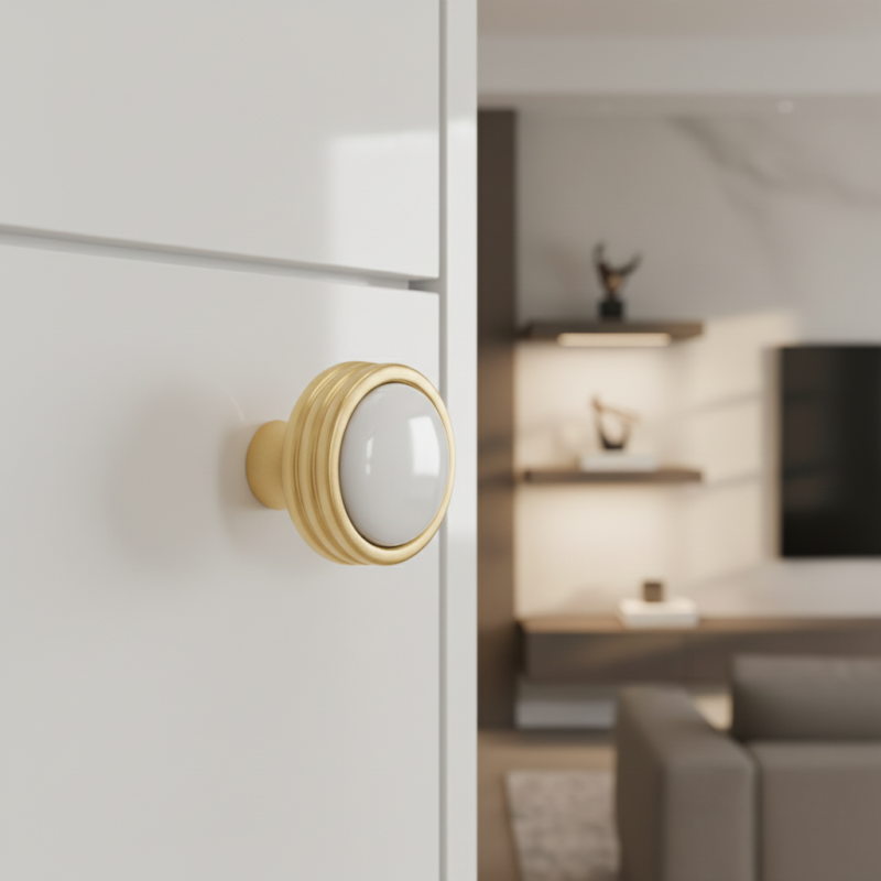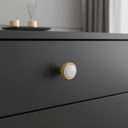 Jemné profilovanie kovovej časti a hladký biely porcelán dodávajú knopke noblesný a nadčasový charakter. Ideálna je na komody, skrinky, kuchynské linky či kúpeľňový nábytok – všade tam, kde chcete vniesť elegantný detail.