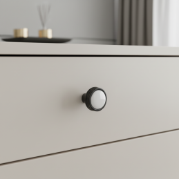 Knopka FARO v čiernej matnej farbe je perfektnou voľbou pre tých, ktorí chcú svoj nábytok doplniť o moderný a pôsobivý detail, ktorý možno skombinovať aj s dlhými úchytkami FARO pre jednotný dizajn celého interiéru.