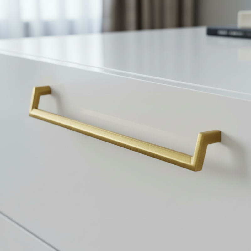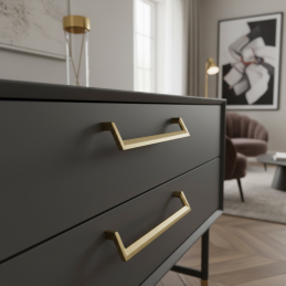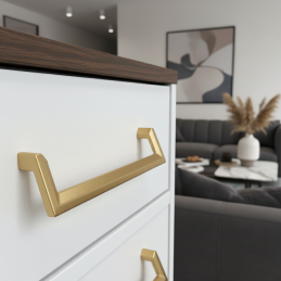 Matná zlatá farba vytvára teplý a sofistikovaný akcent, ktorý krásne ladí so svetlými aj tmavými povrchmi, drevom, bielym lakom či minimalistickými dekoráciami. Tento typ úchytky je obľúbený pri interiérových riešeniach, kde je cieľom dosiahnuť prémiový, ale zároveň mierne decentný vzhľad.