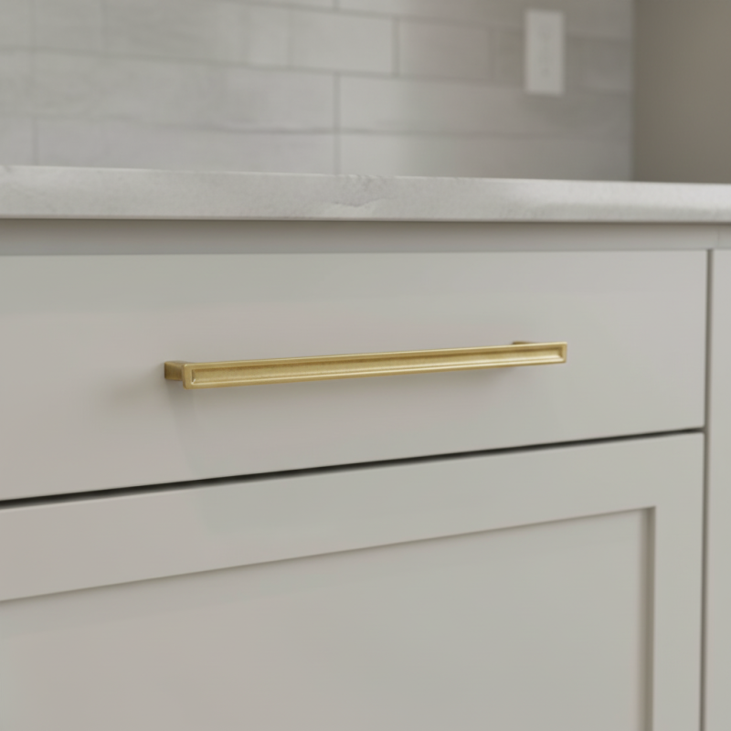 Úchytka SINTRA v elegantnej zlatej matnej úprave je štýlovým a nadčasovým doplnkom pre moderný aj klasický nábytok. Jej jemne profilovaný tvar s dekoratívnym rámovaním dodáva nábytku noblesný vzhľad bez prehnanej okázalosti. Zlatá matná farba pôsobí luxusne a zároveň decentne, vďaka čomu sa úchytka SINTRA skvele kombinuje so svetlými aj tmavými dekoráciami, drevom či lakovanými povrchmi.