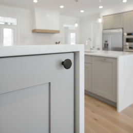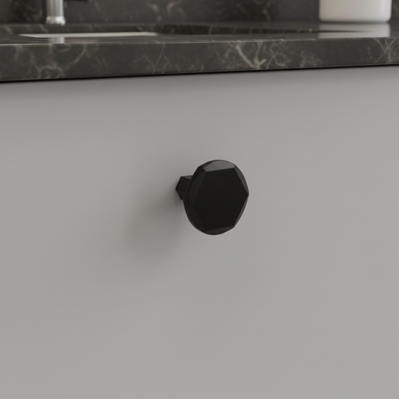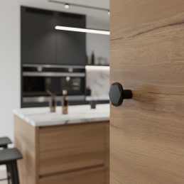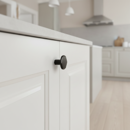 Knopka LAMEGO v čiernej matnej úprave je elegantným a moderným detailom, ktorý dokonale dopĺňa veľké úchytky LAMEGO v rovnakom dizajne. Jej jemne fazetovaný tvar pôsobí luxusne a zároveň nadčasovo, vďaka čomu sa hodí do moderných, industriálnych aj minimalistických interiérov.
