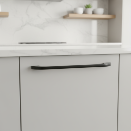 Úchytka DARA v čiernej matnej úprave je elegantným a minimalistickým riešením pre moderný nábytok. Jej jemne oblúkový tvar a štíhla línia pôsobia ľahko, nadčasovo a veľmi vkusne. Matná čierna farba dodáva úchytke sofistikovaný vzhľad a vytvára výrazný kontrast, ktorý krásne vynikne na svetlých aj tmavých dvierkach, dreve aj lakovaných povrchoch.
