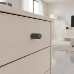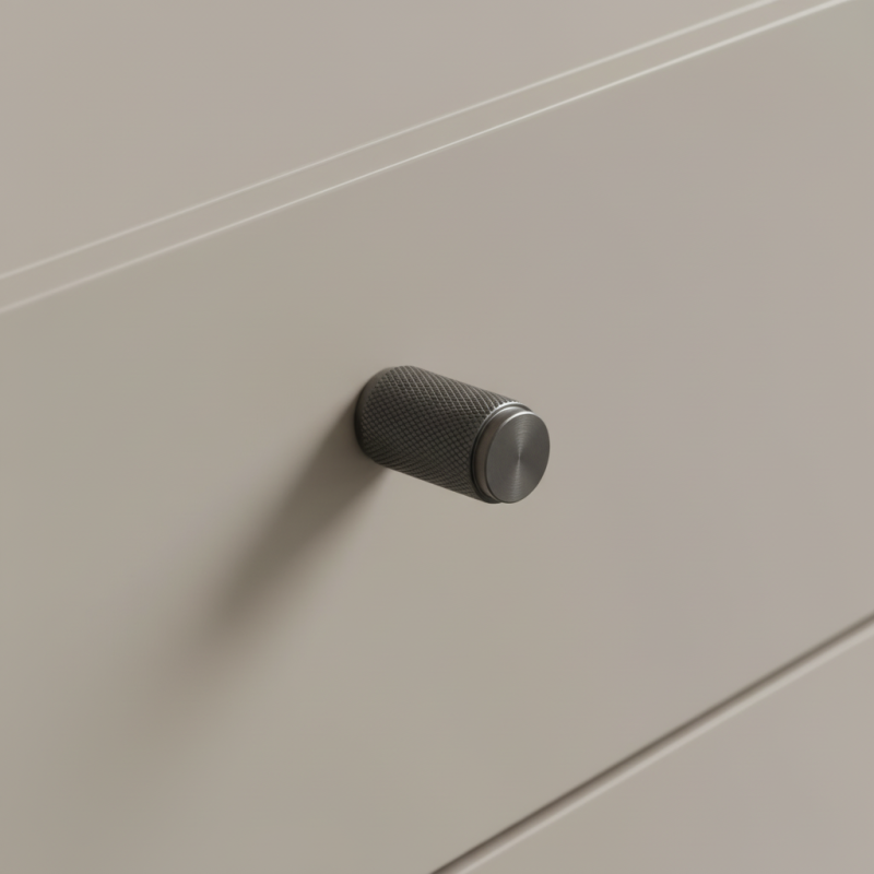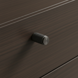 Knopka LAYLA v čiernom grafitovom prevedení je moderným a technicky pôsobiacim doplnkom, ktorý zaujme jemne ryhovaným (knurled) povrchom. Tento detail nielen zvýrazňuje industriálny charakter, ale zároveň zlepšuje úchop a komfort pri každodennom používaní. Matný grafitový odtieň pôsobí elegantne a výborne sa kombinuje s čiernym, sivým, betónovým aj dreveným nábytkom.