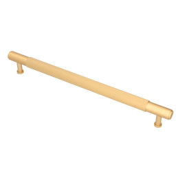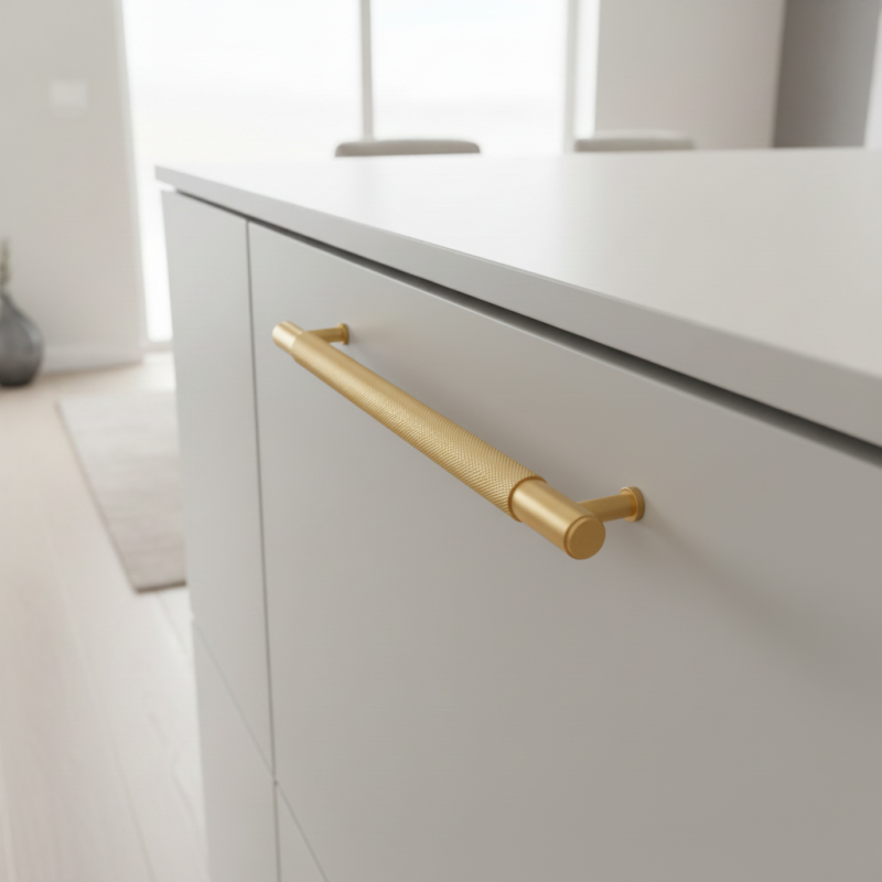 Úchytka LAYLA / Zlatá brúsená je elegantný a luxusne pôsobiaci dizajnový prvok, ktorý spája moderný industriálny štýl s teplým, sofistikovaným vzhľadom brúseného zlata. Charakteristickým znakom úchytky je jemne ryhovaná (knurling) stredová časť, ktorá dodáva úchytke výrazný dizajnový detail a zároveň zabezpečuje komfortný a pevný úchop. Hladké koncovky vytvárajú harmonický kontrast a podčiarkujú precízne spracovanie.