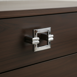 Úchytka je vyrobená z kvalitnej zliatiny, ktorá zabezpečuje vysokú pevnosť, stabilitu a dlhú životnosť. Lesklý chrómový povrch dodáva nábytku elegantný vzhľad a zároveň je nenáročný na údržbu.