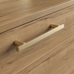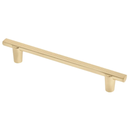 Elegantná nábytková úchytka LIZA v luxusnom brúsenom zlatom prevedení je štýlovým doplnkom pre kuchynské linky, skrinky, komody alebo šatníky. Moderný minimalistický dizajn s jemným drážkovaním na prednej časti zabezpečuje nielen atraktívny vzhľad, ale aj pohodlný a pevný úchop.