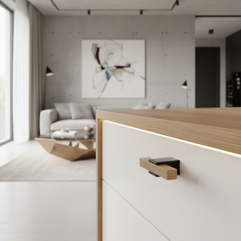 Drevená knopka ALVEA v prevedení dub lakovaný je moderným a nadčasovým doplnkom nábytku, ktorý kombinuje čistý hranatý tvar a teplý prírodný vzhľad masívneho dubového dreva. Celá knopka – vrátane koncoviek – je vyrobená z jedného materiálu, čo vytvára harmonický celok a estetickú jednotu.