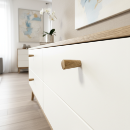 Knopka BERGO v prevedení dub lakovaný prináša do interiéru moderný minimalizmus spojený s prirodzeným teplom masívneho dreva. Jej jemne kónický tvar pôsobí elegantne, ergonomicky a nadčasovo, vďaka čomu sa perfektne hodí na zásuvky, skrinky či dvierka v kuchyni, obývačke, spálni aj predsieni. Lakovaný povrch zvýrazňuje prirodzenú kresbu dubového dreva a zároveň zabezpečuje jeho dlhodobú ochranu.