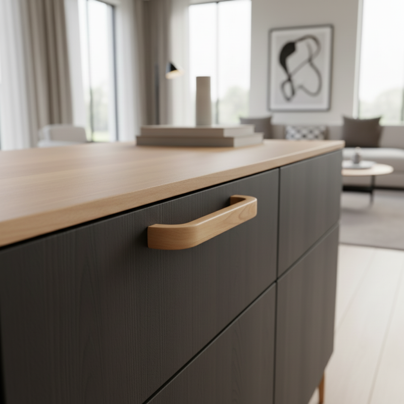 Zaoblené línie úchytky poskytujú príjemný úchop a pôsobia moderne aj prírodne zároveň.