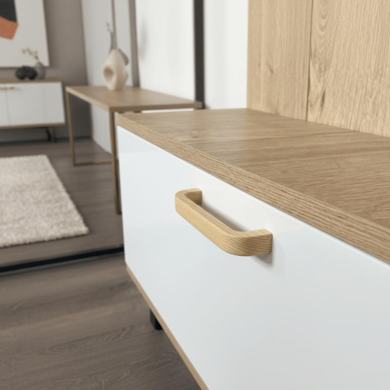 Drevená úchytka MIA v prevedení borovica lakovaná je krásnym prírodným doplnkom, ktorý dodá nábytku teplý a útulný charakter. Je vyrobená z kvalitnej borovice a povrch je ošetrený transparentným lakom, ktorý chráni drevo a zvýrazňuje jeho typickú výraznú kresbu.