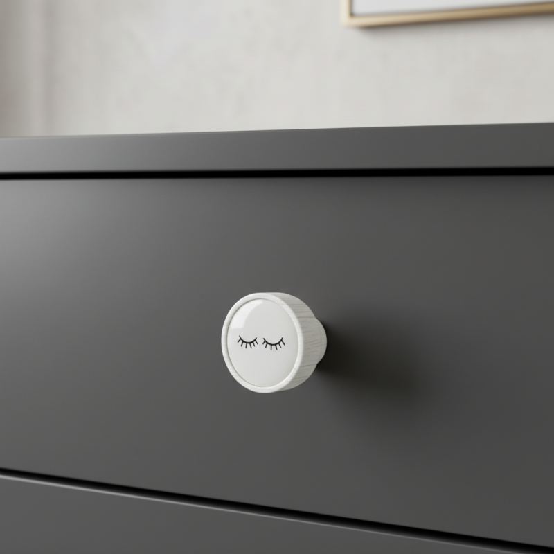 Drevená úchytka ARSIA v matnom bielom prevedení s jemným motívom zatvorených očných rias je moderným a hravým doplnkom, ktorý sa perfektne hodí do detských či dievčenských izieb. Minimalistická grafika pôsobí nežne, čisté biele telo úchytky dodáva nábytku elegantný vzhľad a masívne bukové drevo zabezpečuje dlhú životnosť.