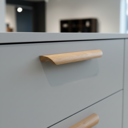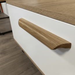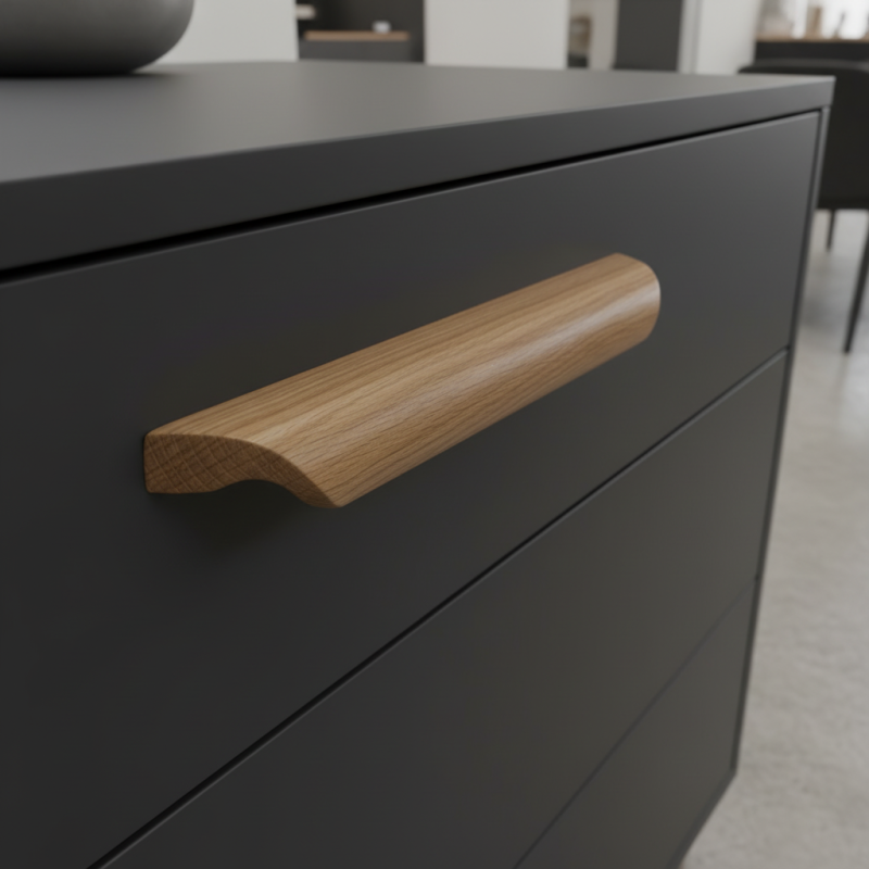 Drevená úchytka BOLZANO je moderný dizajnový prvok vyrobený z kvalitného dubového dreva s lakovaným povrchom, ktorý zvýrazňuje prirodzenú kresbu dreva a zároveň poskytuje vysokú odolnosť a jednoduchú údržbu. Jej ergonomický tvar prináša komfortné uchopenie a elegantný vzhľad, vďaka čomu vynikne na kuchynskom, obývacom či kúpeľňovom nábytku.
