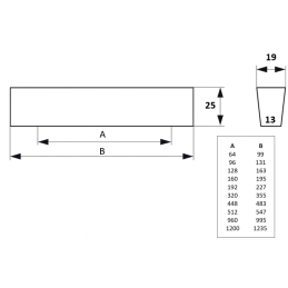Šírka: 19 mm (vrchná strana) / 13 mm (spodná strana)