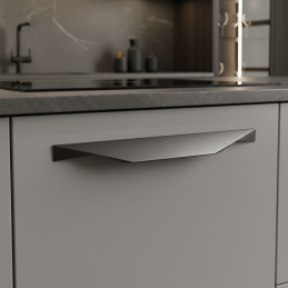 Úchytka VALENCIA v elegantnom prevedení grafit brúsený prináša do interiéru moderný luxus a výrazný dizajnový prvok. Jej ostro rezané línie a charakteristický tvar vytvárajú sofistikovaný vzhľad, ktorý dokonale doplní moderný nábytok, kuchynské linky či šatníkové skrine.