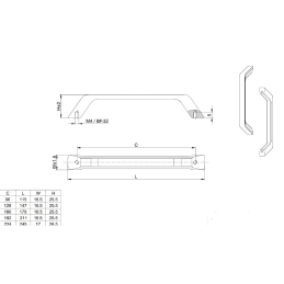 • Rozteč 192 mm – celková dĺžka 211 mm, šírka 16,5 mm, výška 25,5 mm