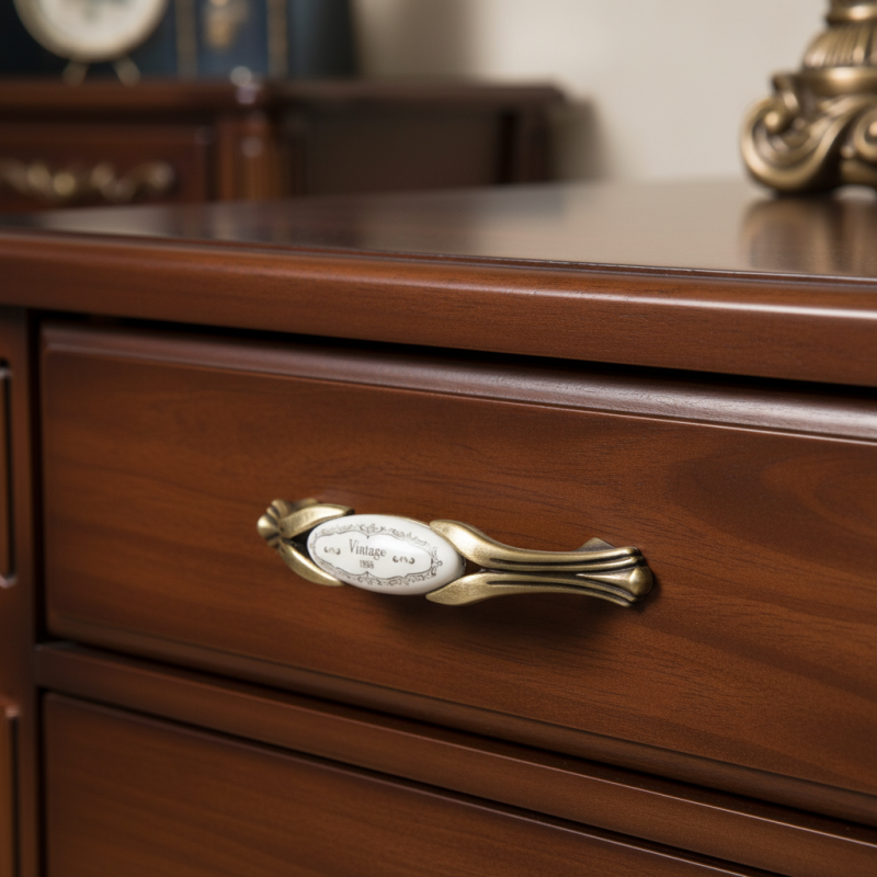 Elegantná porcelánová úchytka FRIDA v starozlatom prevedení je dokonalým doplnkom pre každý interiér, ktorý túži po nádychu noblesy a retro elegancie. Jemný porcelán s dekoratívnym vintage motívom je zasadený do kovového korpusu so starozlatou patinou, čo vytvára harmonický a výrazný dizajnový prvok.