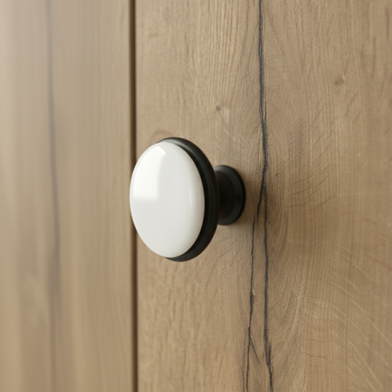 Elegantná porcelánová knopka BLANCA v kombinácii čierneho kovu a bieleho porcelánu dodá nábytku jemný rustikálny, vintage aj retro charakter. Ide o veľmi obľúbený model, ktorý sa skvele hodí na kuchynské skrinky, komody či renovovaný starý nábytok.