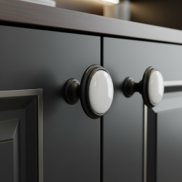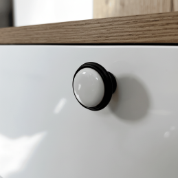 Elegantná úchytka FRESNO v čiernom prevedení spája kvalitné kovové telo s keramickým dekorom, čím vytvára nadčasový a univerzálny doplnok vhodný do moderne aj klasicky ladených interiérov. Jej harmonické tvarovanie a jemné línie dodávajú nábytku noblesu, zatiaľ čo odolné materiály zaručujú dlhú životnosť a pohodlné používanie.