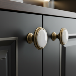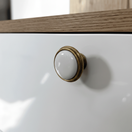 Elegantná úchytka FRESNO v staromosadznom prevedení spája kvalitné kovové telo s keramickým dekorom, čím vytvára nadčasový a univerzálny doplnok vhodný do moderne aj klasicky ladených interiérov. Jej harmonické tvarovanie a jemné línie dodávajú nábytku noblesu, zatiaľ čo odolné materiály zaručujú dlhú životnosť a pohodlné používanie.