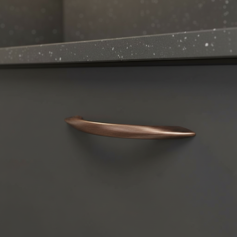 Tmavá meď spája moderný industriálny vzhľad s teplou eleganciou. Úchytka KINGSTON v tomto prevedení dodá nábytku charakter a sofistikovanosť, zároveň pôsobí nadčasovo a ľahko sa kombinuje so širokou paletou farieb a materiálov.