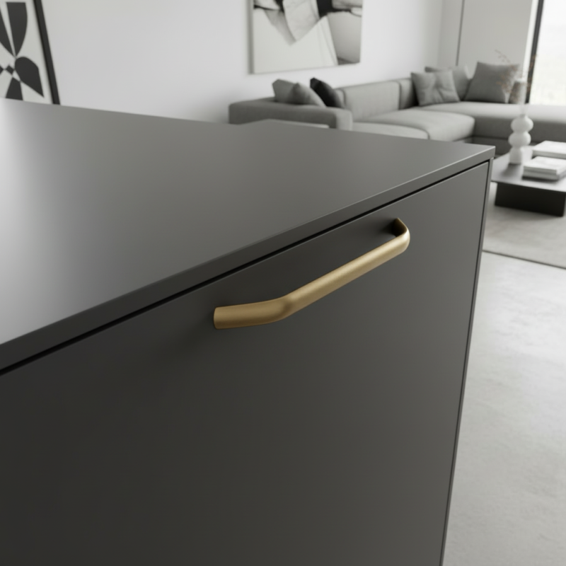 Úchytka DIVA v povrchovej úprave Zlatá brúsená je elegantný a nadčasový doplnok vhodný do moderných, minimalistických aj industriálnych interiérov. Jemne zaoblený tvar a kvalitné kovové spracovanie dodajú nábytku prémiový vzhľad. Nerezová farba je univerzálna, ľahko kombinovateľná a pôsobí čisto a profesionálne – skvelá voľba do kuchyne, kúpeľne aj obývačky.