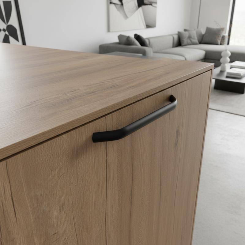 Úchytka DIVA je moderný a elegantný dizajnový prvok, ktorý dodá vášmu nábytku luxusný a nadčasový vzhľad. Vďaka svojmu tenkému, jemne zaoblenému tvaru pôsobí subtílne, no zároveň veľmi štýlovo. Povrch v čiernej matnej farbe je mimoriadne obľúbený v moderných interiéroch – skvele ladí s drevom, bielym nábytkom aj betónovými dekormi.