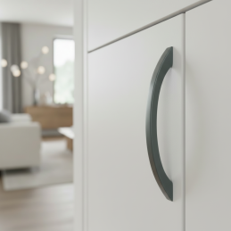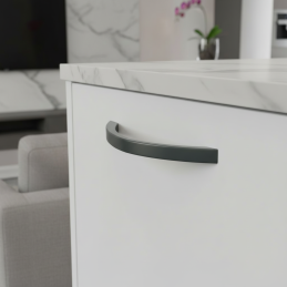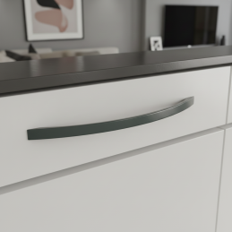 Elegantná úchytka EMILIO v modernom prevedení zelená matná je výnimočným doplnkom pre nábytok, ktorý má zaujať na prvý pohľad. Tento netradičný, no veľmi štýlový odtieň dodá kuchyni, kúpeľni, komode či obývacej zostave svieži dizajnový akcent.