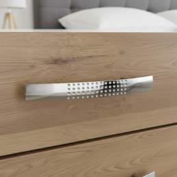 Úchytka VELLEN v lesklom chrómovom prevedení je ideálnou voľbou pre všetkých, ktorí chcú svojmu nábytku dodať moderný, čistý a žiarivý vzhľad. Jemne prehnutý tvar doplnený o dekoratívnu štruktúru drobných bodiek vytvára efektný dizajnový detail, ktorý vynikne v kuchyniach, kúpeľniach aj obývacích priestoroch.