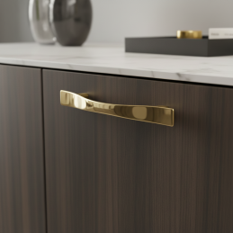 Úchytka WIX v zlatom lesklom prevedení je výrazným dizajnovým doplnkom, ktorý dodá nábytku moderný, elegantný a zároveň luxusný charakter. Jej plynulo tvarovaná línia pôsobí ľahko a harmonicky, zatiaľ čo zlatý vysoký lesk sa dokonale hodí do trendových aj glamour interiérov.