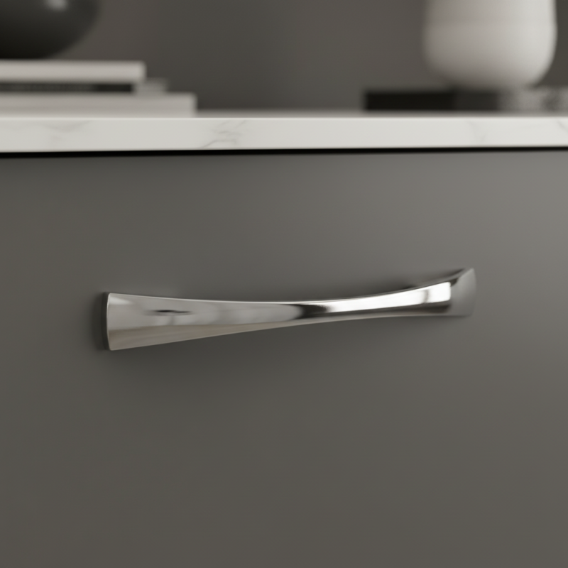 Úchytka SIMPLO v lesklom chrómovom prevedení prináša čistý, moderný a nadčasový vzhľad, ktorý dokonale doplní kuchynský, kúpeľňový aj obývací nábytok. Jej jemne prehnutý tvar pôsobí elegantne a v kombinácii s vysokým leskom dodáva nábytku svieži a luxusný efekt.
