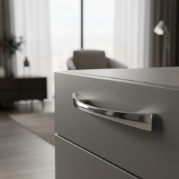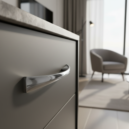 Lesklý chróm je univerzálny, elegantný a nadčasový. Úchytka SIMPLO v tomto prevedení zvýrazní čisté línie nábytku a dodá mu moderný, jemne luxusný charakter.