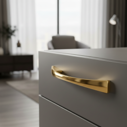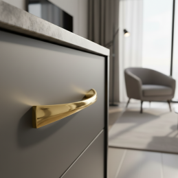 Úchytka SIMPLO v zlatom lesklom prevedení je štýlovým doplnkom, ktorý dodá nábytku elegantný a exkluzívny charakter. Jej jemne prehnutý tvar pôsobí príjemne a decentne, zatiaľ čo lesklý zlatý povrch pridáva výraznú prémiovosť a luxusný efekt – ideálne do interiérov, ktoré chcú zaujať už na prvý pohľad.