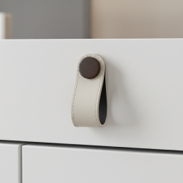 Elegantná kožená knopka CASE v bielom prevedení je moderným a zároveň jemným doplnkom vhodným pre rôzne typy nábytku. Kombinuje pravú kožu s kvalitným kovovým prvkom v tmavom prevedení, ktorý vytvára pekný kontrast. Dekoratívne prešívanie dodáva úchytke remeselný a nadčasový charakter.