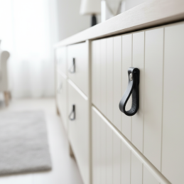 Kožená úchytka DOLCE Mini v čiernom prevedení je moderným doplnkom, ktorý dodá nábytku elegantný a nadčasový vzhľad. Mäkký, ohybný kožený pásik pôsobí minimalisticky a zároveň štýlovo – ideálny pre komody, skrinky aj zásuvky.