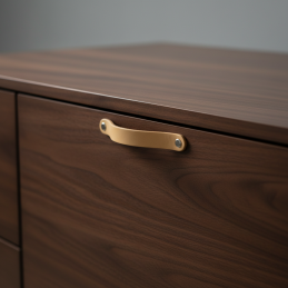 Exkluzívna úchytka vyrobená z pravej prírodnej kože v kombinácii s elegantnou hliníkovou matnou koncovkou. Vďaka ručnému spracovaniu pôsobí luxusne, moderne a dodá nábytku unikátny charakter. Koža je príjemná na dotyk a časom získava prirodzenú patinu, ktorá jej pridáva na estetickej hodnote.