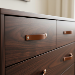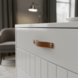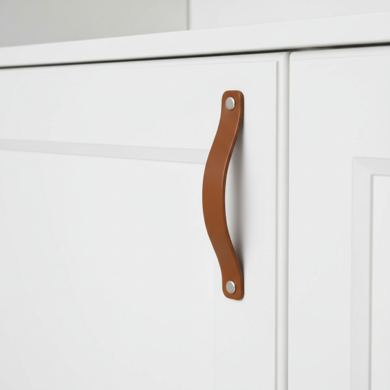 Vďaka prirodzenej pružnosti kože je úchytka pohodlná na dotyk a dokonale sa prispôsobí rôznym typom dvierok či zásuviek. Možno ju použiť aj ako koženú knopku.