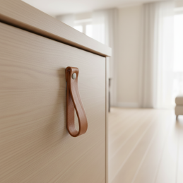 Kožená úchytka DOLCE Maxi v hnedom prevedení prináša do interiéru teplý prírodný akcent a dizajnovú jemnosť. Vďaka väčšej dĺžke pôsobí výraznejšie než verzia Mini a je vhodná na skrinky, komody, šuplíky či doplnkový nábytok. Mäkká pravá koža dodáva nábytku jedinečný charakter a príjemný dotyk.