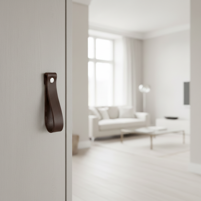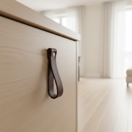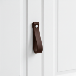 Kožená úchytka DOLCE Maxi v tmavohnedom prevedení pôsobí elegantne, prirodzene a nadčasovo. Pravá koža dodáva nábytku luxusný, hrejivý akcent a vďaka väčšej dĺžke úchytka pôsobí výraznejšie, čo ju robí ideálnou pre skrinky, komody či väčšie zásuvky. Tmavohnedý odtieň krásne ladí s drevom, prírodnými materiálmi aj modernými povrchmi.