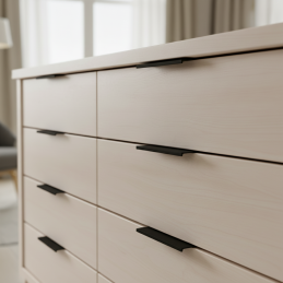 Elegantná a moderná úchytka CANSAS určená na montáž na hranu dvierok alebo zásuviek. Matná čierna povrchová úprava pôsobí nadčasovo a perfektne dopĺňa minimalistické, industriálne a moderné interiéry. Úchytka poskytuje pohodlný úchop a zachováva čistý dizajn nábytkových plôch.