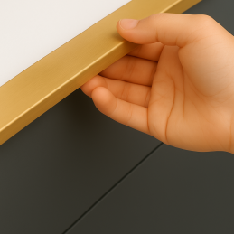 Úchytka CHANEL predstavuje elegantné a funkčné riešenie pre moderný nábytok. Vďaka svojmu minimalistickému dizajnu sa montuje priamo na hranu dvierok, čím zachová čisté línie a nadčasový vzhľad.